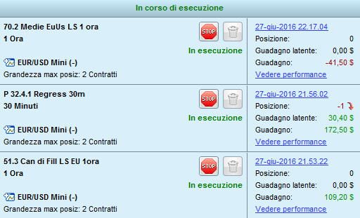 ….bene, con la brexit settimana scorsa vista la volatilità altissima prevista ho arrestato tutti i miei TS in esecuzione, questa sera li ho riavviati (solo quelli che lavorano su Eur/Usd per ora) , proporrei di postare anche i vostri TS ma non in backtest come si fa di solito, mettiamoli quando sono in corso di esecuzione ( solo con denaro reale) .