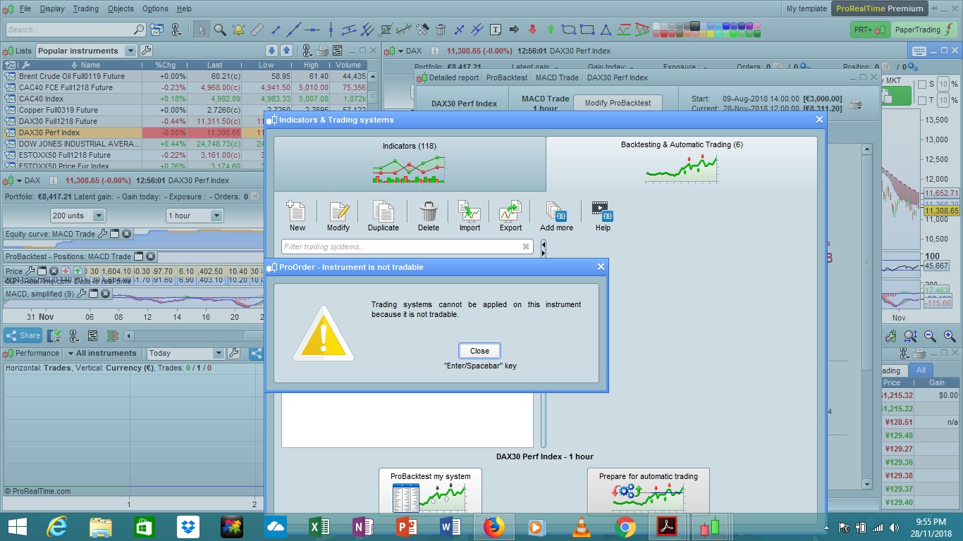 Can anybody provide feedback as to why I am recieving the attached message when I attempt to set up automatic trading for the DAX30 and FTSE100? System works fine when I ProBacktest my system, I am a new user to ProRealTime.
