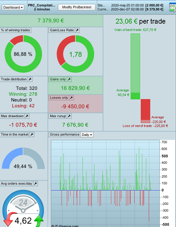 This backtest is with a SL value of 225, and trailstart value of 40. It’s also tested with a 5 point spread. Pretty promising results, so this one is going into the live demo testing phase:-)