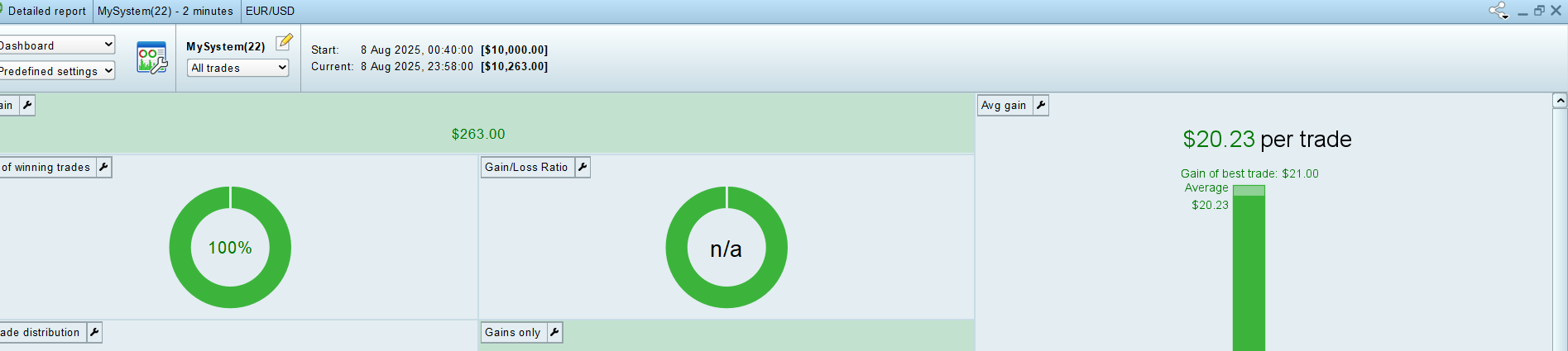 I attach an example. This is a screenshot of a backtest of a code and as you can see the only day that is applied is on the 8thAugust, the days of the backtesting for short periods run at least 2-3 days. Is there a way to have more days? i am using V12 with IG. Thank you.