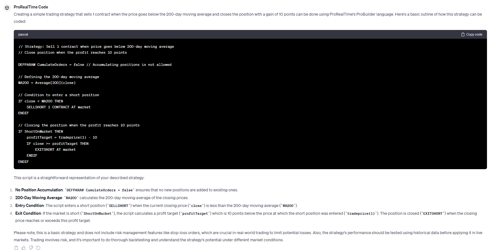 ProRealTime Code – ChatGPT agent in training