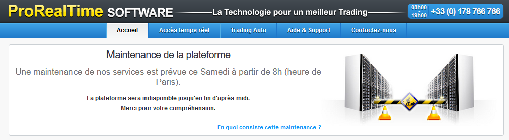 If that helps, when connecting to prorealtime v11, the announcement says platform unavailable “until end of this afternoon”