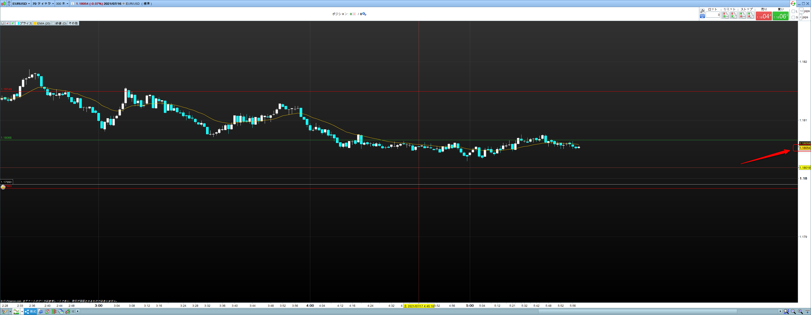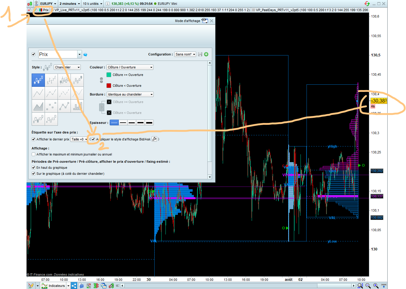 2 – then see image with EurJpy example for visual location in properties window of the bid/ask style box to tick to better see pips in price display