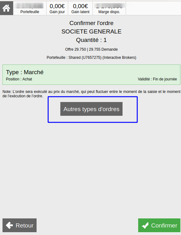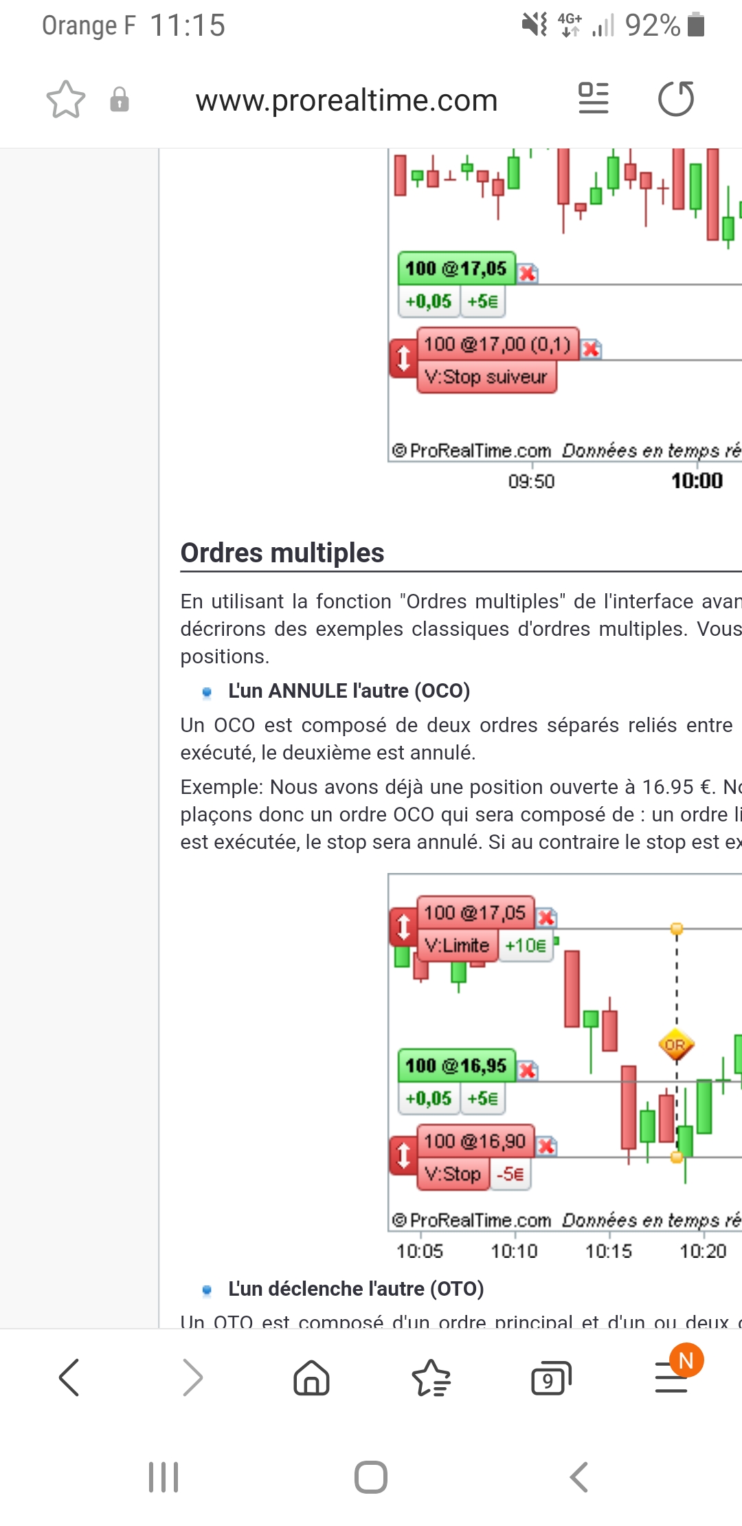 Pour faire suite à votre demande, afin de passer un ordre OCO sur la version mobile de ProRealTime, je vous invite lors du passage d’ordre à sélectionner “autres types d’ordres” comme indiqué en PJ, puis OCO.