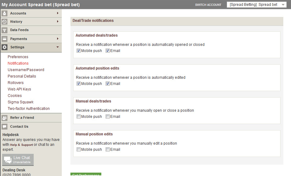 This email ‘notification’ function is available through IGINDEX, which works when a PROREALTIME order has been executed. They also have a mobile app ‘data push’ which will send you a pop up on your phone at the same time if you select the function.