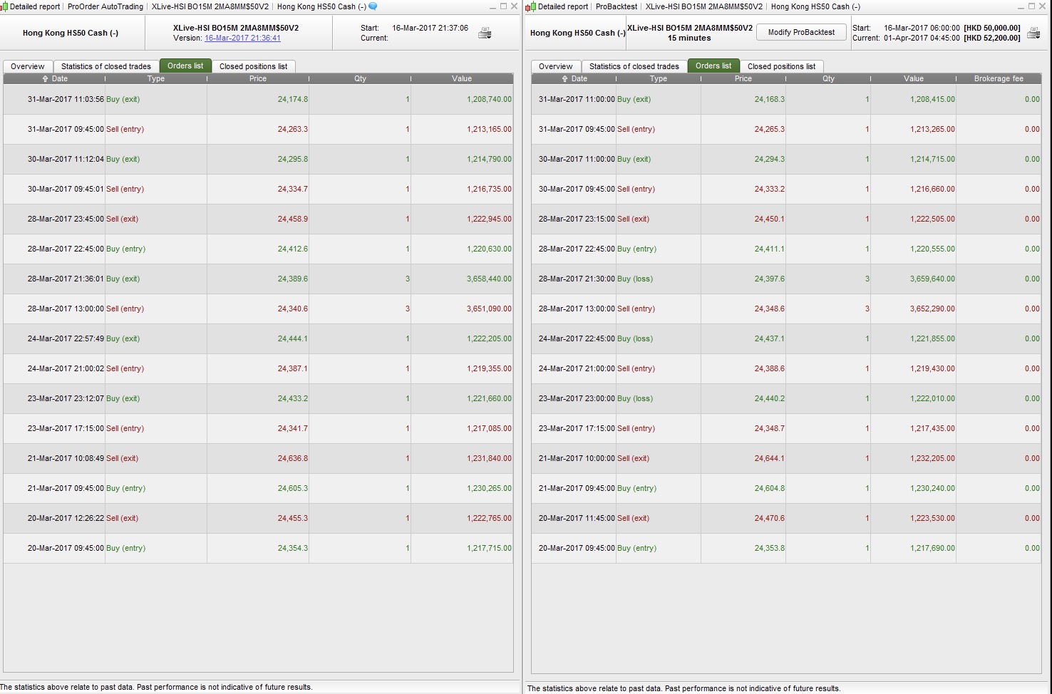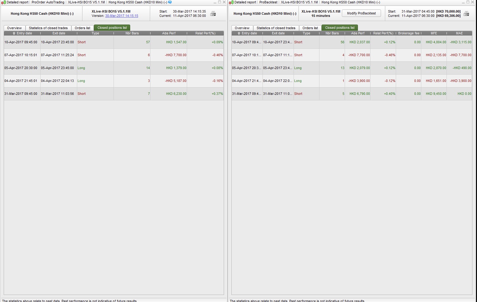 Left was real live trade record, right was backtest (not demo, start date same as real live trade).