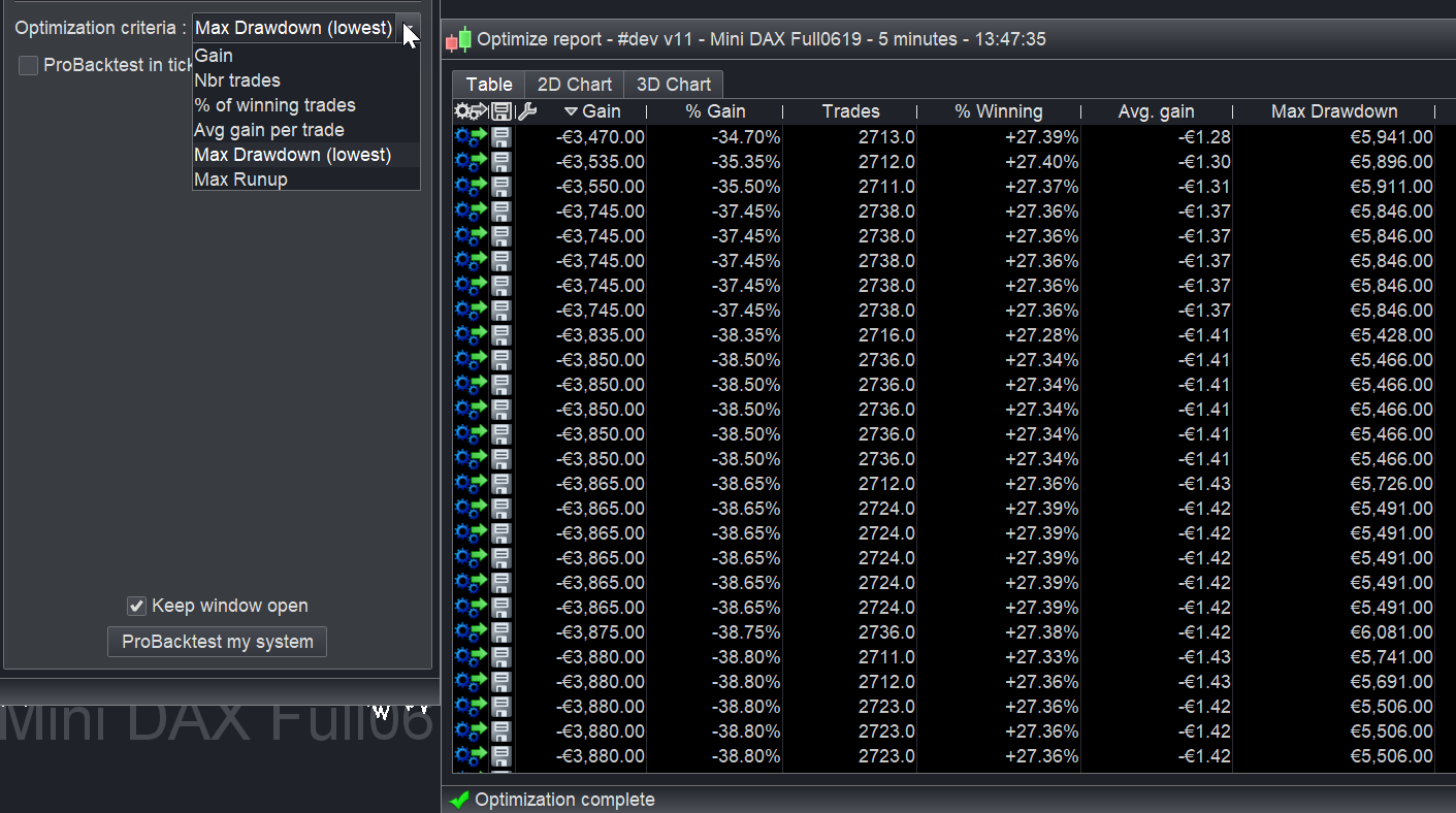 Max drawdown is in the optimisation results list. You can also now optimise on many more criteria than before (see picture attached).