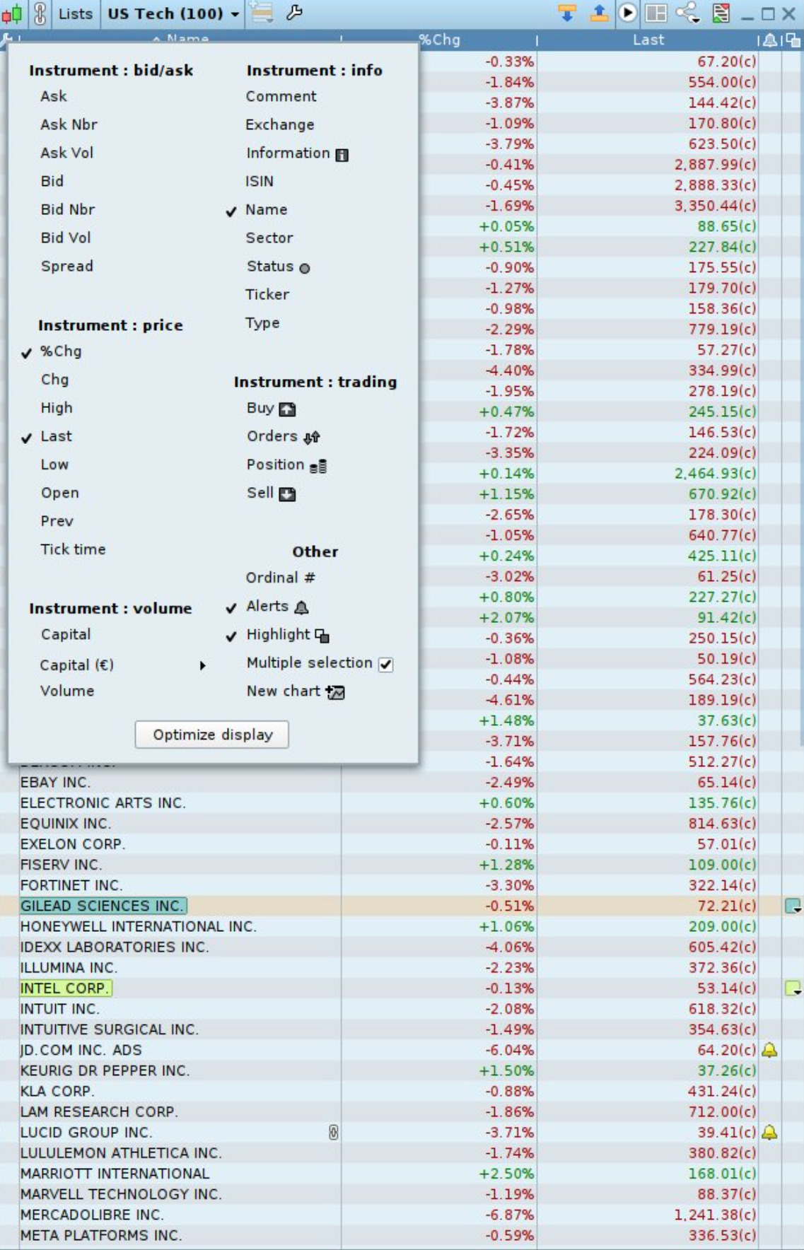 Example: You highlight some instruments in blue and name the blue highlight “watchlist”.