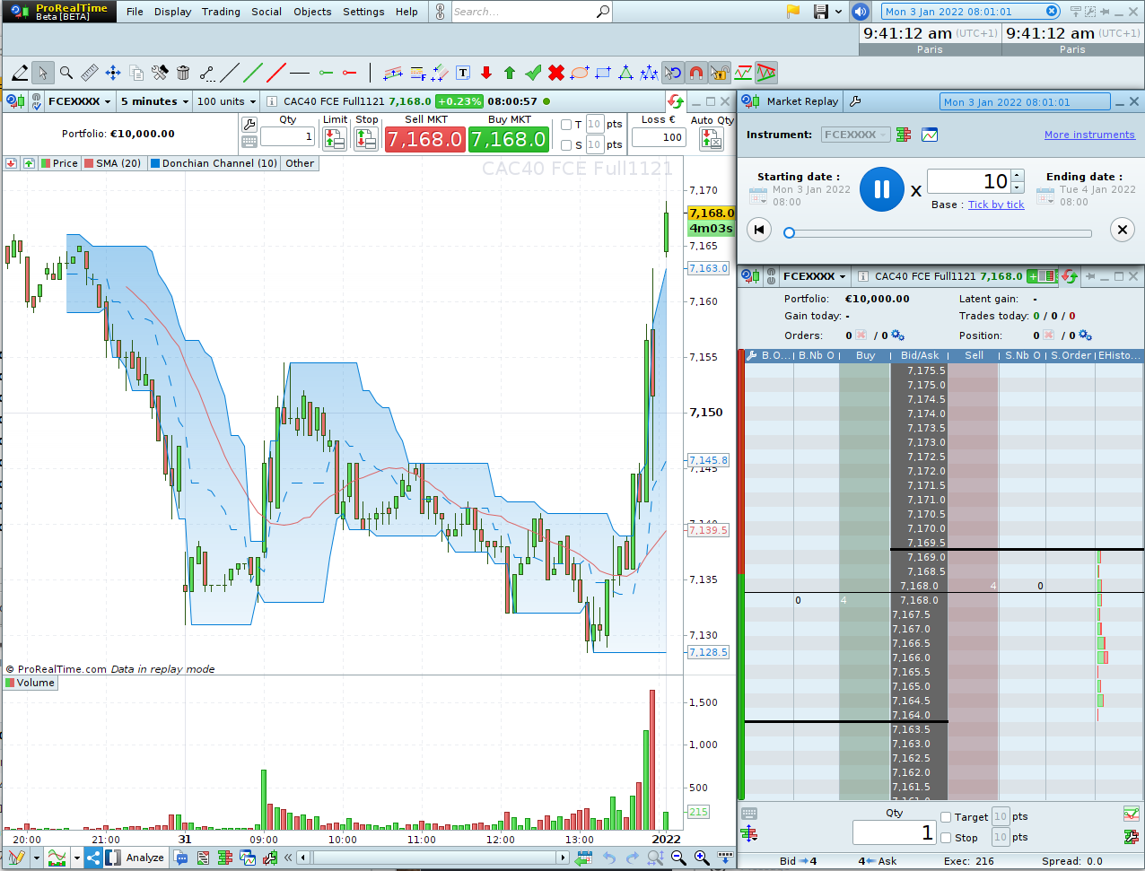 Practice trading in real-time on past data as much as you want, even the weekend. Press pause, fast forward, choose the speed of your Market Replay.