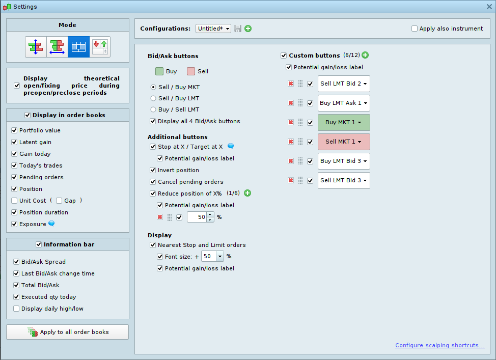 You can also customize the action buttons on your scalping order book: