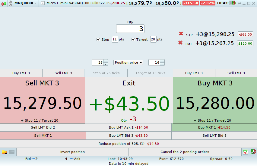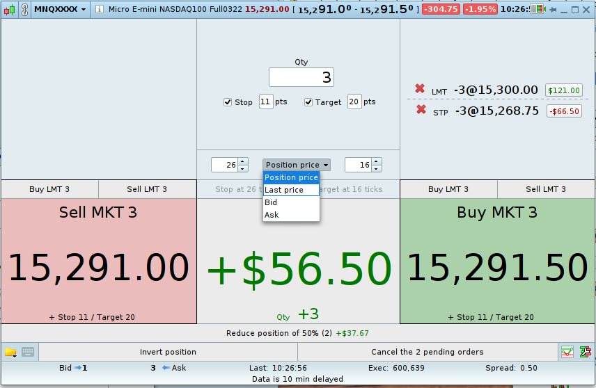 - buy/sell at market with a predefined quantity,