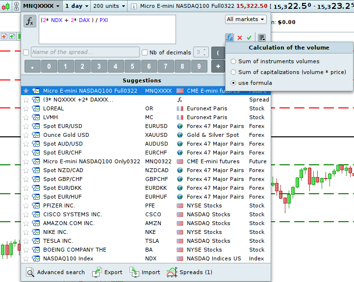 The “Spread” function is renamed “Calculated Instruments”, as a reminder it allows to highlight the price difference between 2 or more financial instruments.