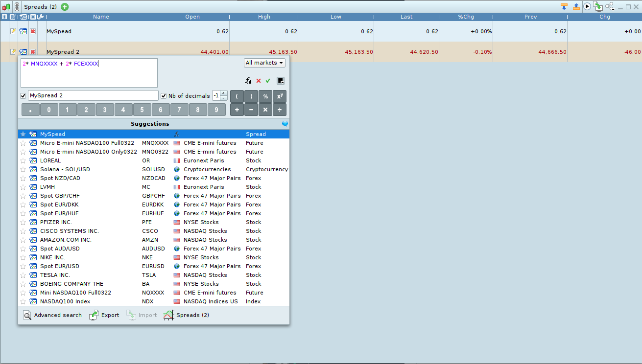 - Creation of value calculated with more than 2 instruments,