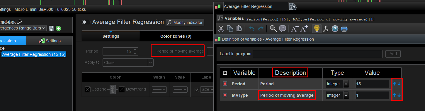It’s back! We can now modify the order of the variables defined in a code, as well as the possibility of giving them a label different from the name of the variable in the code (At the time of the creation, name variable=label)