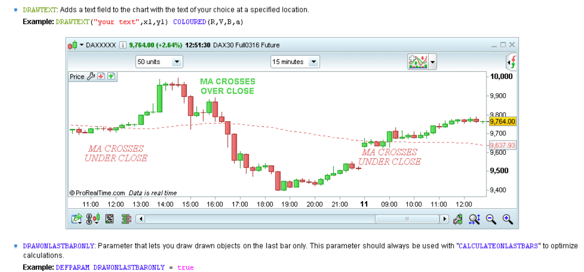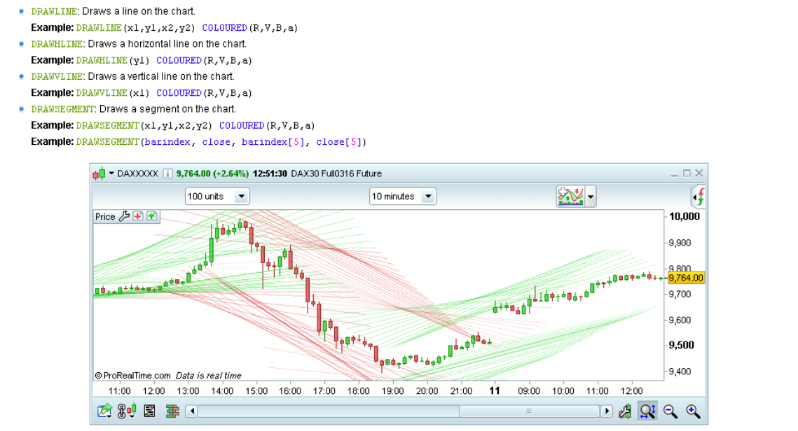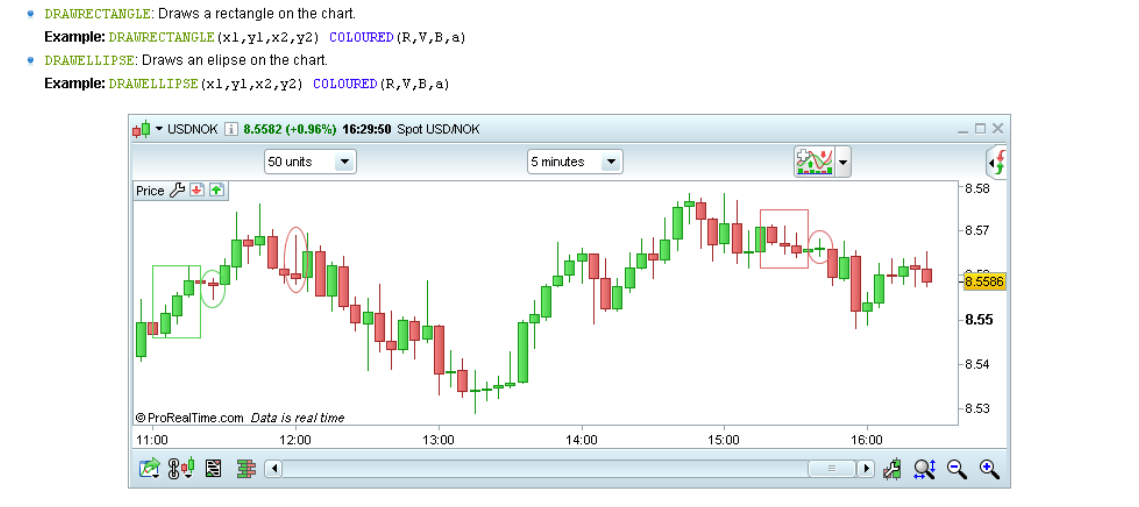 The programming language now lets you draw objects and candles on charts with programming in your custom ProBuilder indicators.