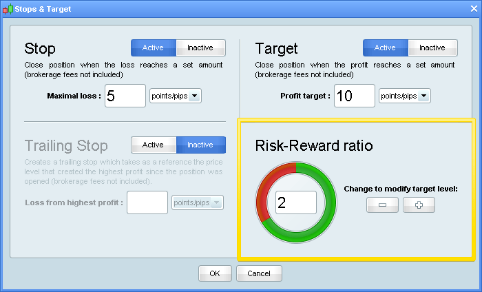 * You can also configure risk-reward ratio in assisted creation mode and the software will adjust your target accordingly