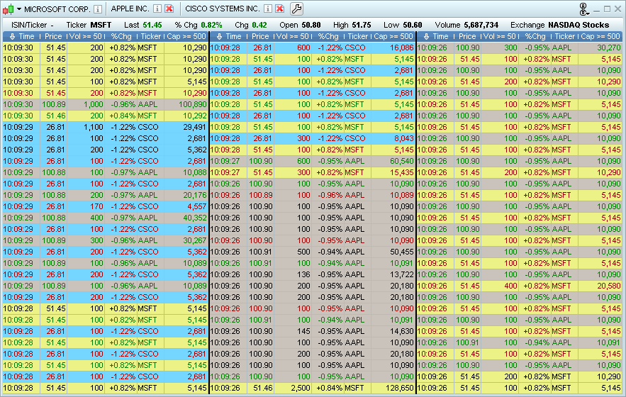 * Add instrument to tick by tick lists with drag and drop from other lists or by clicking on the “wrench” in the title bar; click the red cross in the title bar to delete instruments