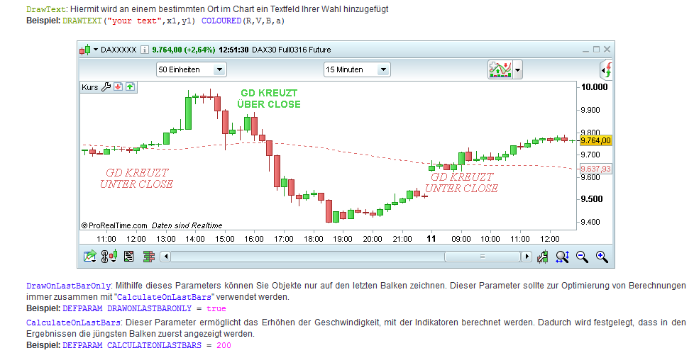 Die Programmiersprache ermöglicht jetzt das Zeichnen von Linien und Kerzen im Chart innerhalb Ihrer eigenen ProBuilder-Indikatoren.