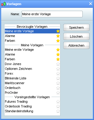 * “Speichern als” zum Speichern und Benennen einer neuen Vorlage