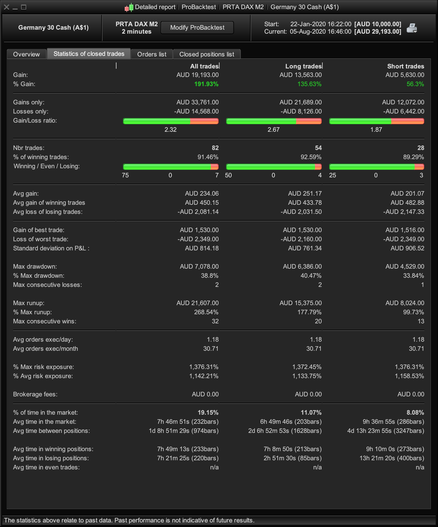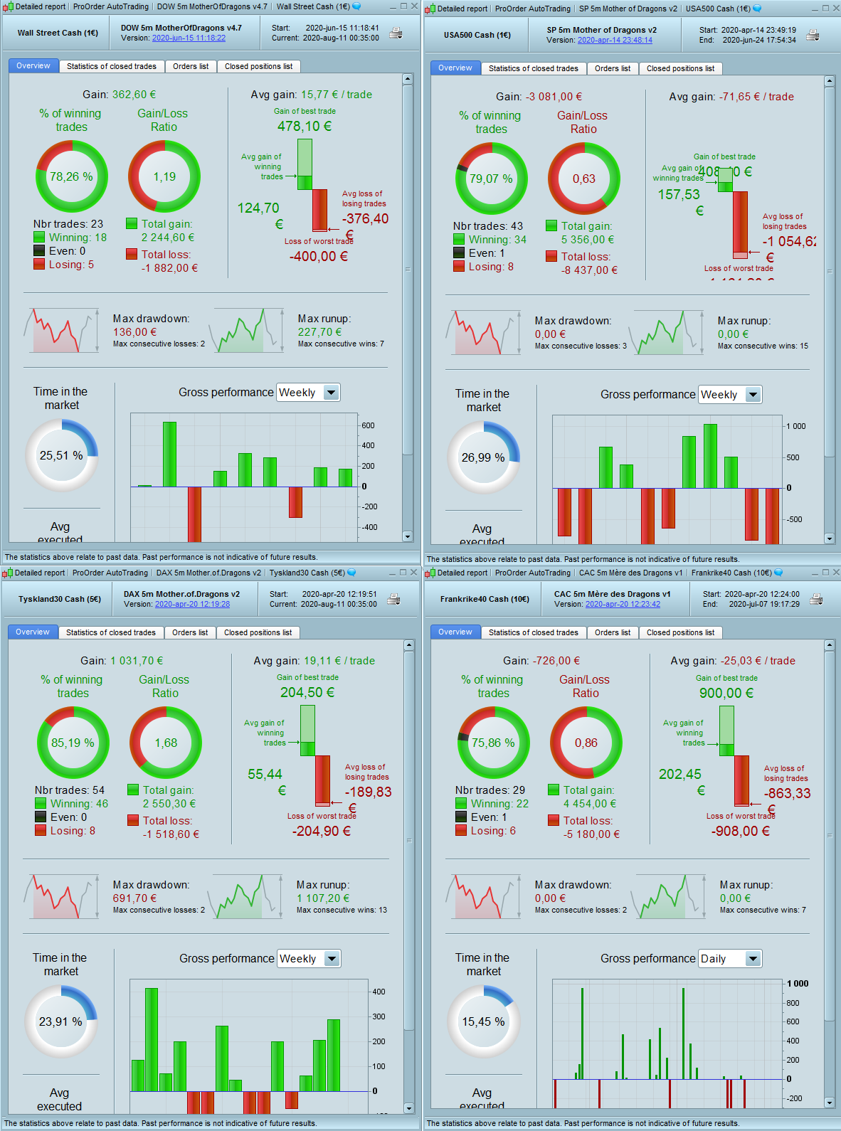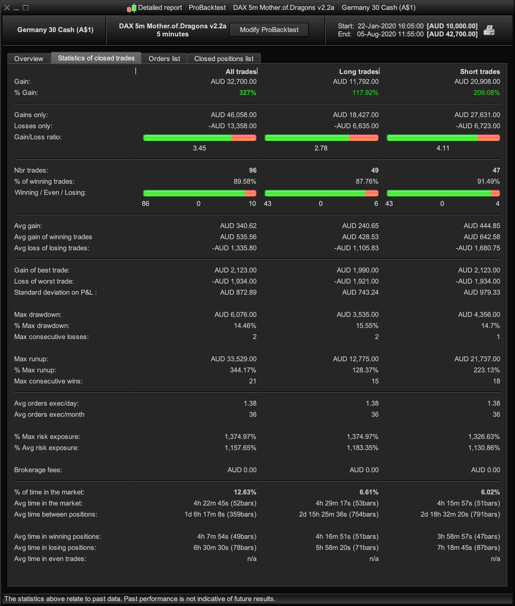 - Focus on Gain/Loss ratio – you don’t want to see the algo taking massive losses and wiping out all the gains.
