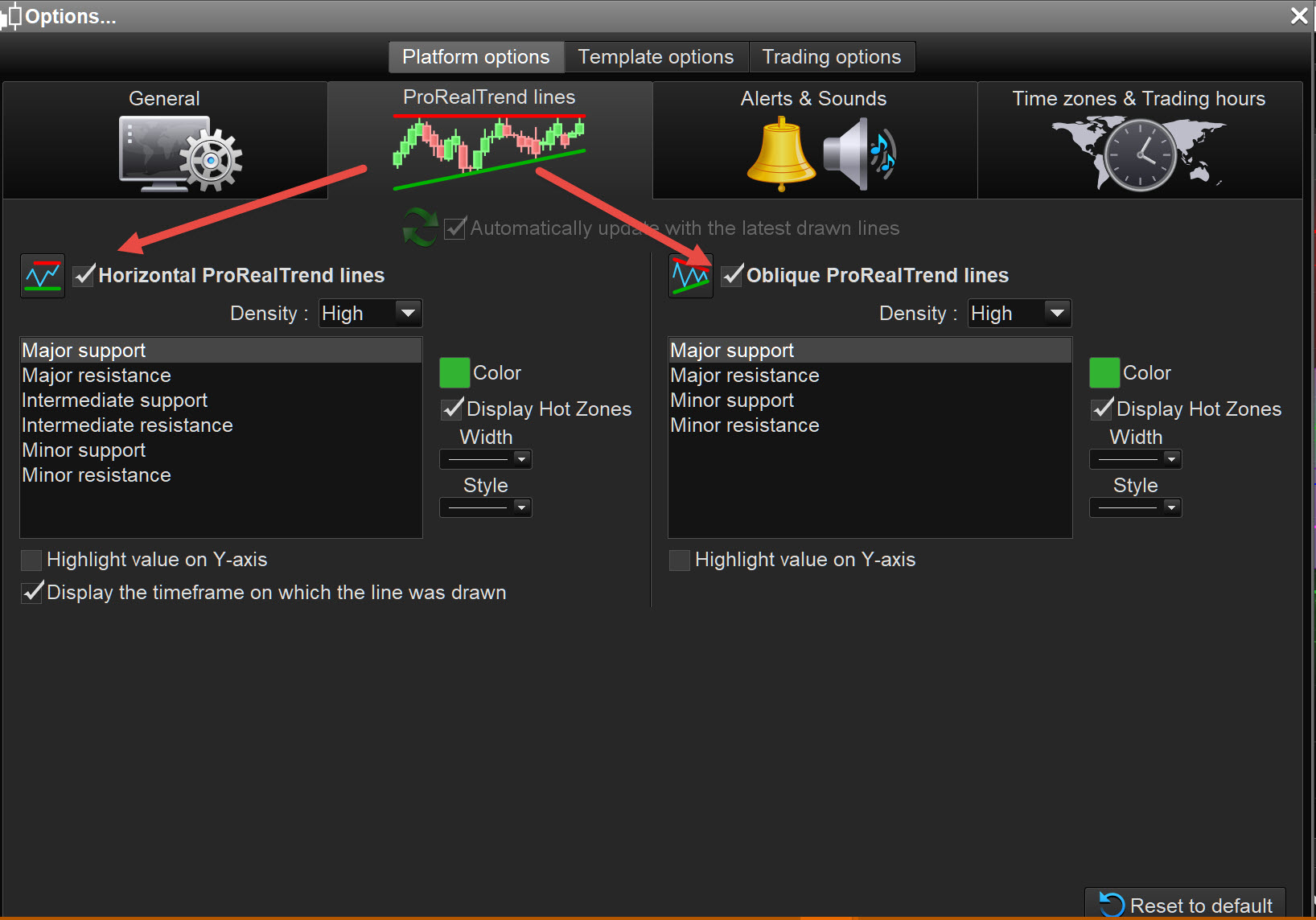 How do I turn off prorealtrend lines off