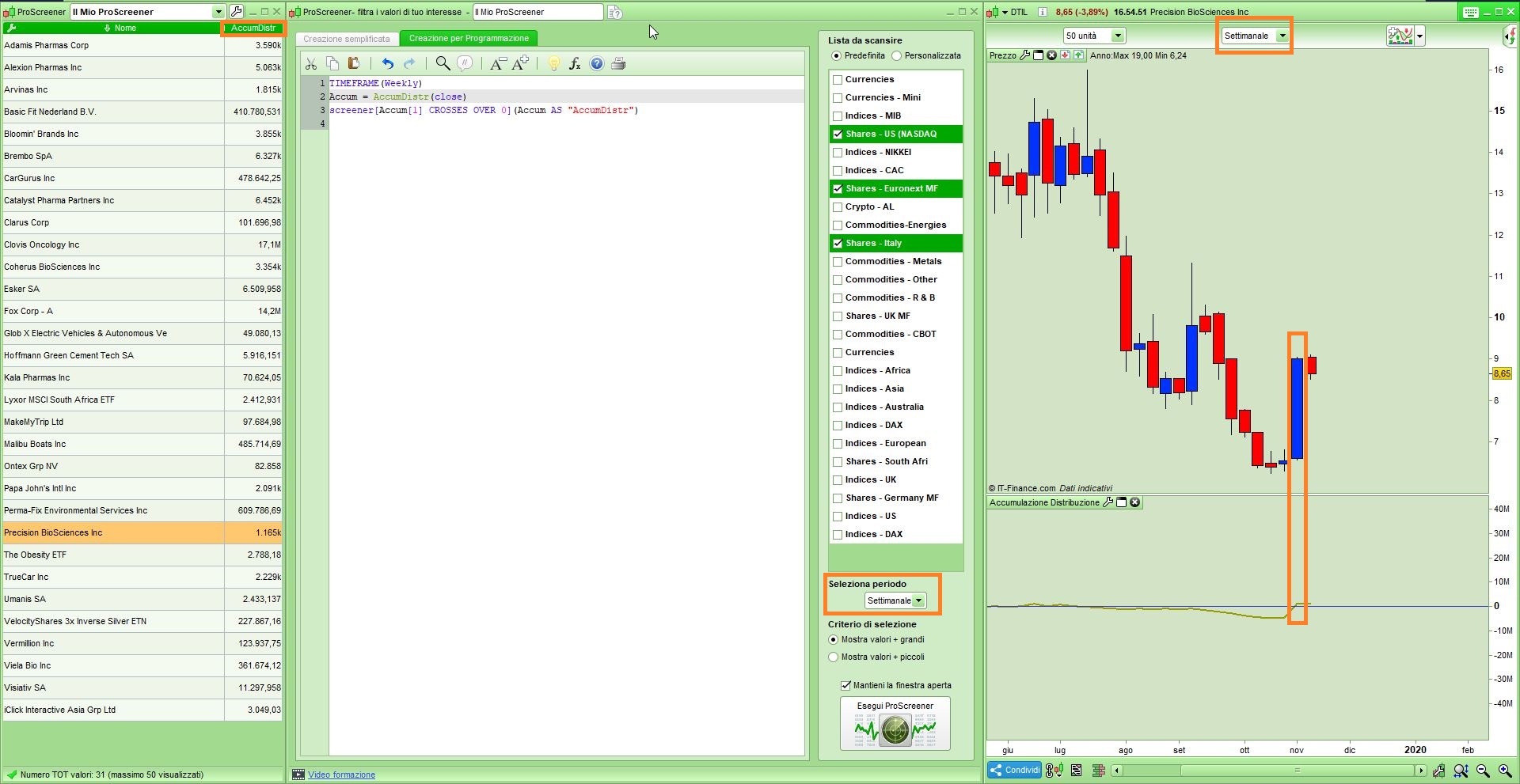 Questo è lo screener. Ti allego anche i risultati.