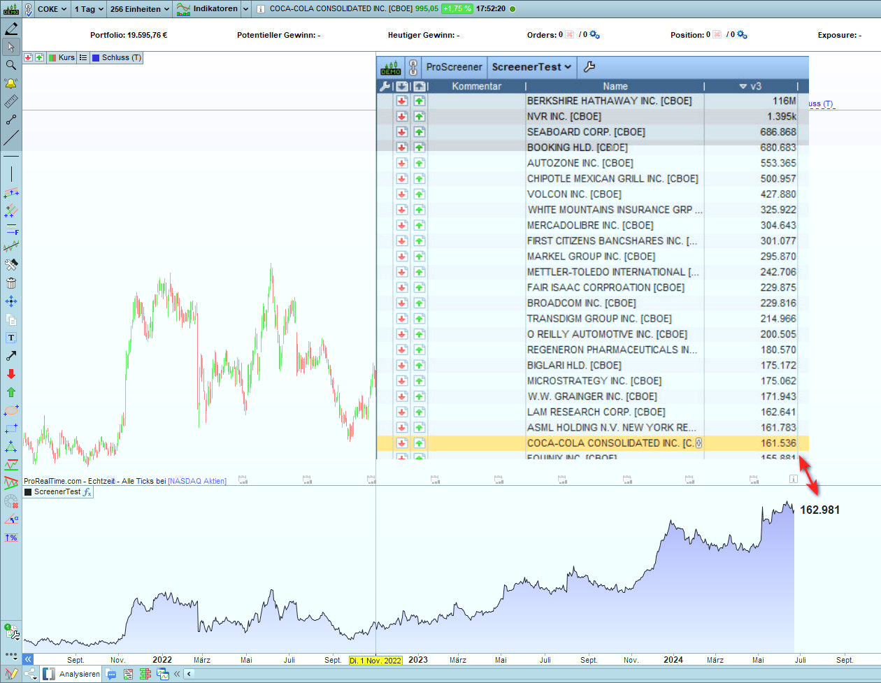 to show the facts, i add the last 200 close values in both the builder and the screener.