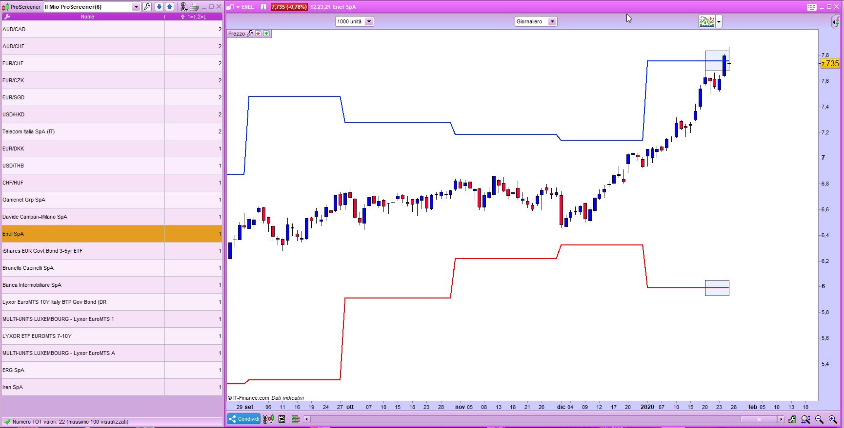 A tal proposito, ho provato lo screener e l’indicatore sviluppati su richiesta.