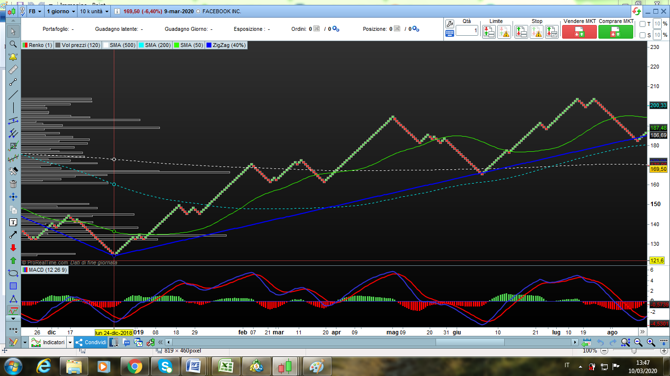 Roberto a proposito delle candele Renko su grafici daily, è possibile aggiungere invece che l Rsi come sopra un codice che estragga i titoli che hanno un mattone verde o più mattoni verdi nell ultima seduta che oltrepassino lo zig zag al 40% ocme nel caso di Facebook 2018 che allego? Poi magari cambio io i parametri, cioè per il ong deve esserci un mattone verde sopra lo zig zag 40% mentre per lo short un mattone rosso sotto lo zig zag al 40% . spero di essermi spiegato. (in pratica ipercomprato/ipervenduto sopra/sotto lo zig zag invece che l Rsi) . Grazie mille