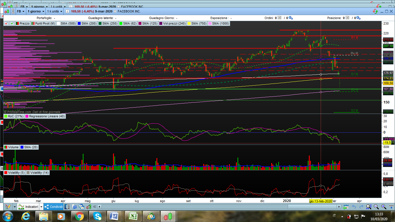 Buon giorno Roberto, chiedevo un codice proscreener per grafici daily, che mi evidenzi i titoli che utilizzando un ROC (metodo percentuale 21%) abbiano subito una perdita del 20% (nelle ultime 21 sedute) . Poi magari cambierò io la percentuale di perdita a seconda del mercato o dello strumento finanziario. Allego esempio su azione Facebook. Sto provando le candele Renko e ringrazio per il codice anche se non tarate con l ATR è un po difficile ragionare sui pip ma comunque vedo di studiarci ancora. Grazie mille.