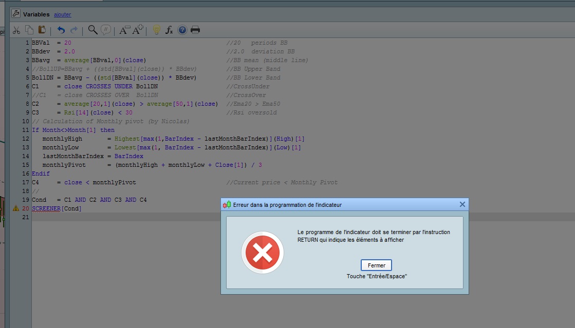 C’est un screener, pas un indicateur. Vous devez le mettre dans le module ProScreener, pas dans ProBuilder.