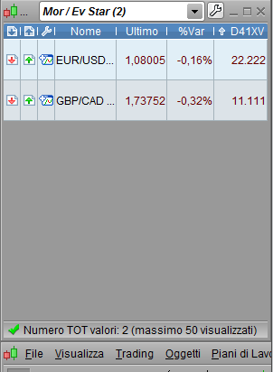 funziona anche la durata del segnale, di due barre (quella in corso + quella precedente), per cui può capitare che adesso sul grafico non vedi il segnale ma c’era la barra precedente. Al fine di facilitarti il compito ti ho fatto questo indicatore: