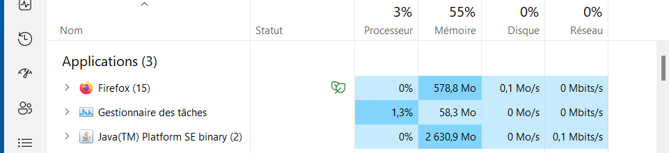 On a side note I saw the garbage collection running (this an I think sole is a Java thing) and it even did something good. So small portions of memory are given back regularly. And because this doesn’t happen at enormously high consumption in the first place, it feels good (say knowing a bit about this stuff).