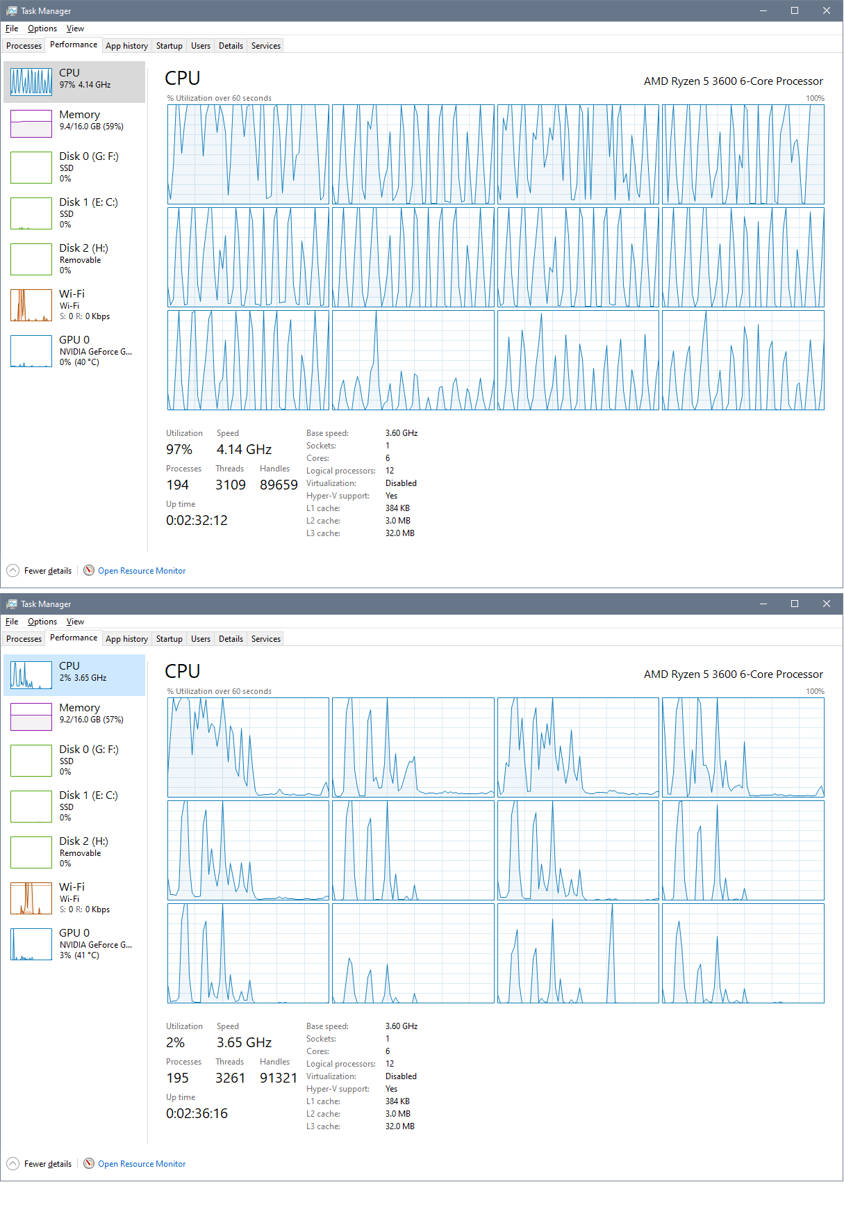 Many (all) older templates exhibit similar symptoms with CPU R3600 6c/12t / 16GB ram cycling thru to 100% … gave me the wills ngl.