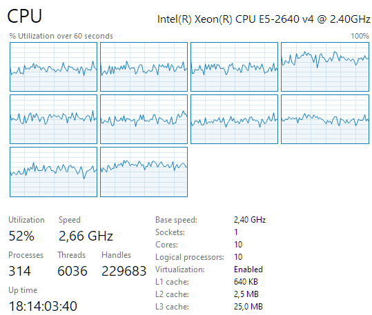 The one below is PRT-IB. 40 charts, say all active (mostly ETH) futures, I’d say low volatility. 6 of them are ETH stocks. Notice that volatility is about linear to CPU usage.