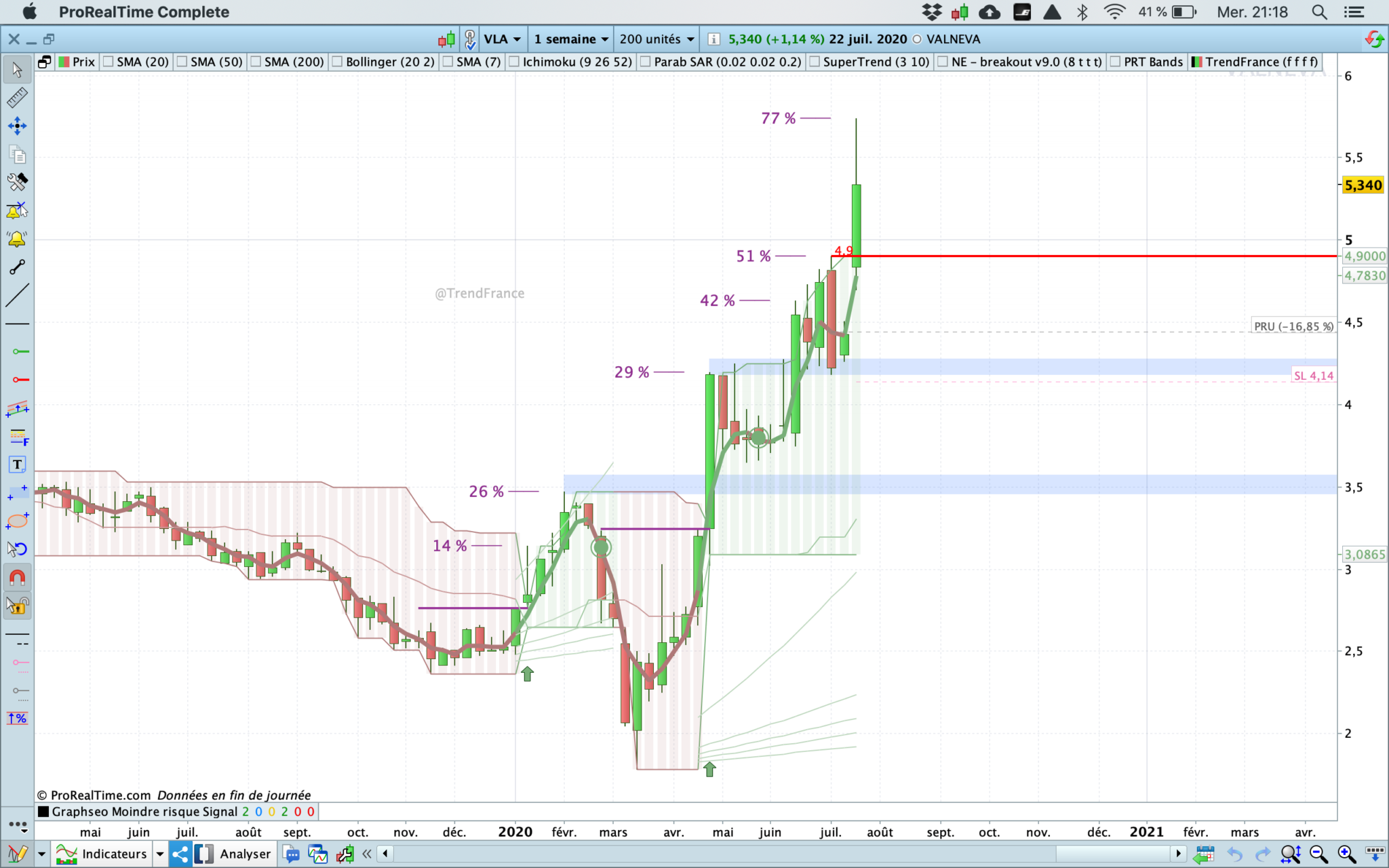 J’en profite pour poster le même graph avec l’indicateur TrendFrance. Pas de bug cette fois.