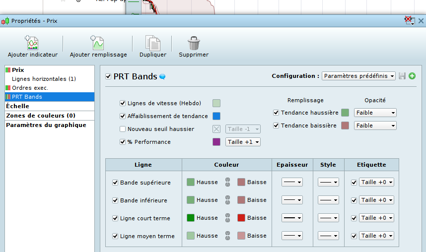 Il y a en effet certains indicateurs techniques soumis à propriété intellectuelle (comme c’est le cas du RocNRoll par exemple), PRT Bands est un indicateur exclusif à la plateforme ProRealTime. Nous n’allons pas rentrer dans le sujet du code visible ou non de l’indicateur, c’est inutile, je pense qu’il est préférable de l’utiliser tel que conçu de base.