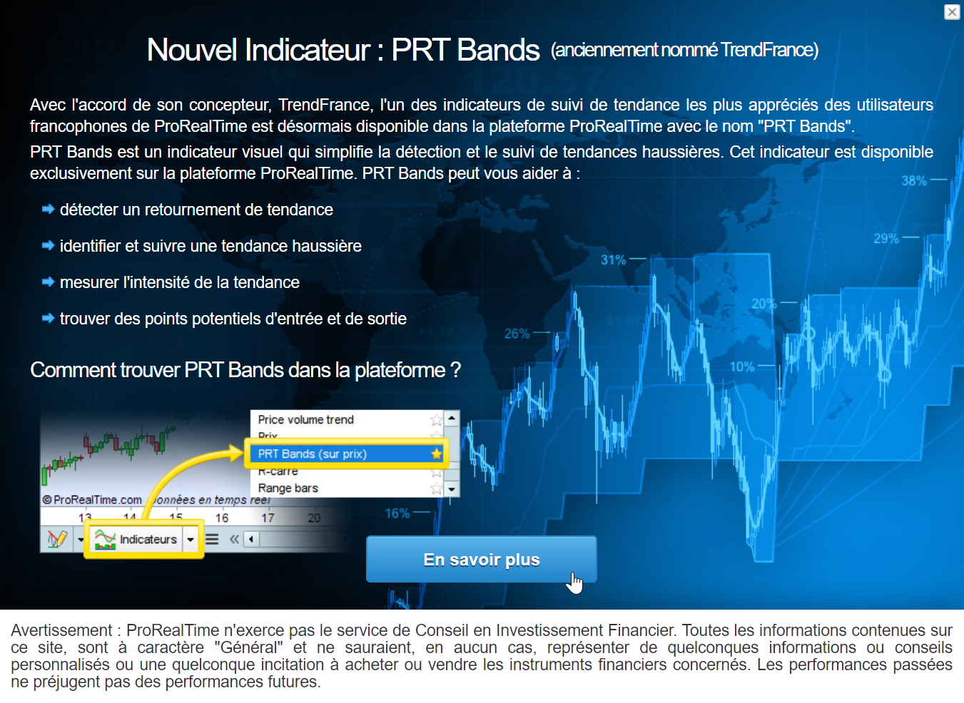 ProRealTime intègre désormais l’indicateur PRT Bands (ex. TrendFrance) dans son arsenal d’indicateurs techniques.