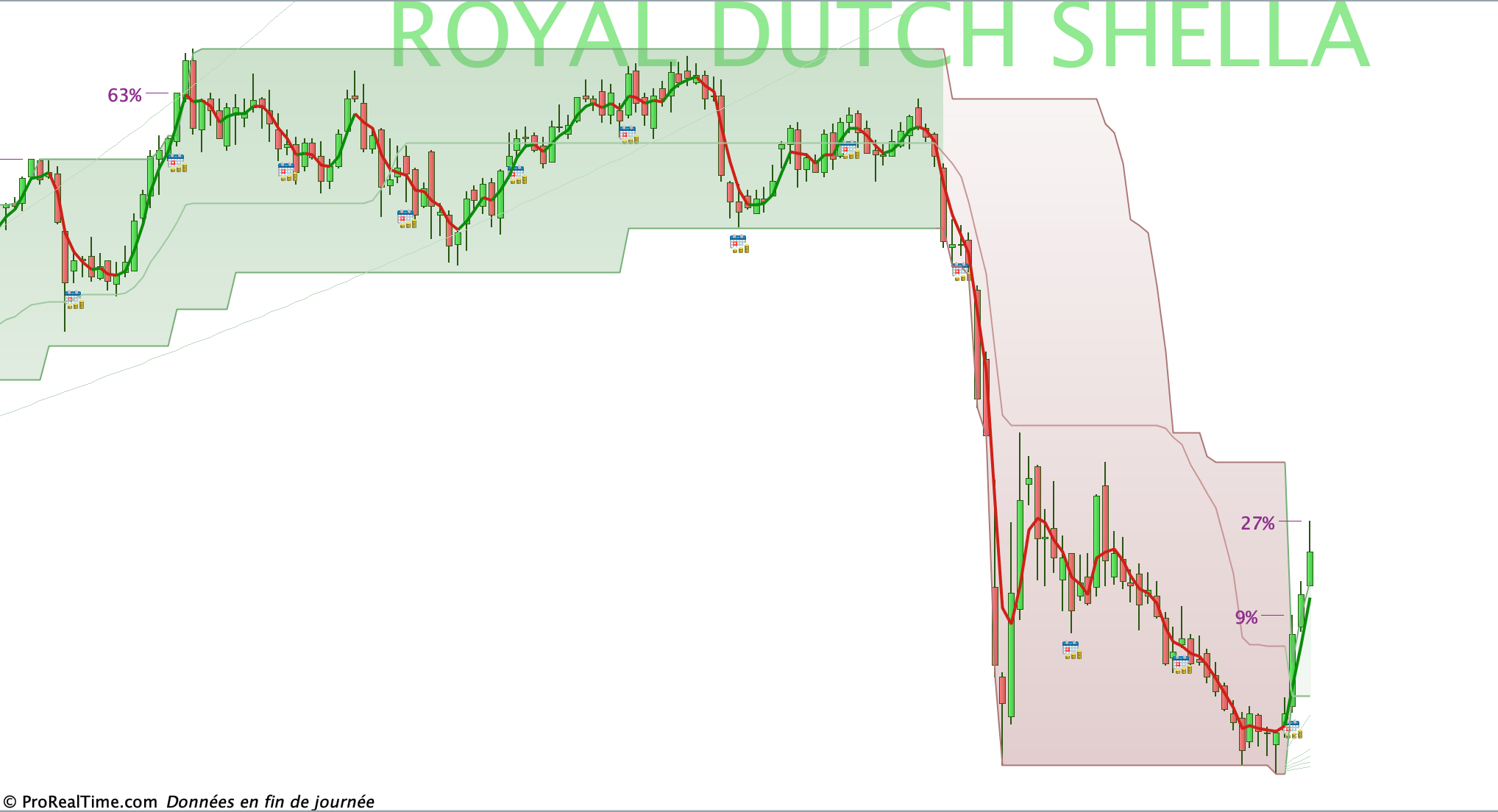 Autre question, comprends-tu pourquoi sur mon screenshot de Shell au dessus, il semble y avoir un décalage de 2 bougies ? Le passage “PRT Bands en vert” se faisant sur l’antépénultième bougie.
