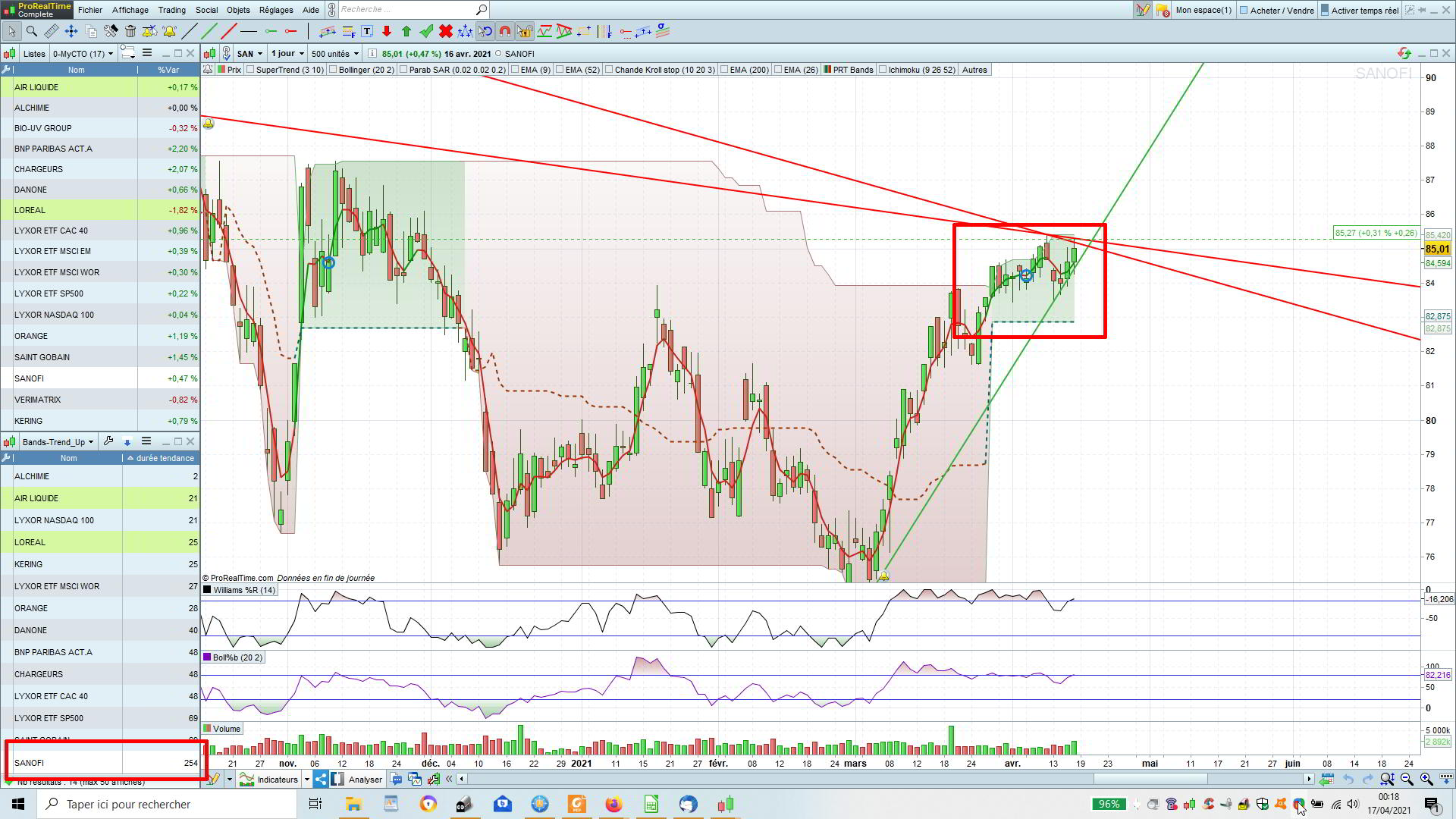 Bonjour Nicolas, j’ai semble t’il un bug avec ce screener sur la valeur Sanofi. La tendance est bonne, mais pas le nombre de jour en tendance (13 sur le graphe, et 254 affiché dans la fenêtre résultat du screener). J’ai mis une copie d’écran. Pour info et partage.