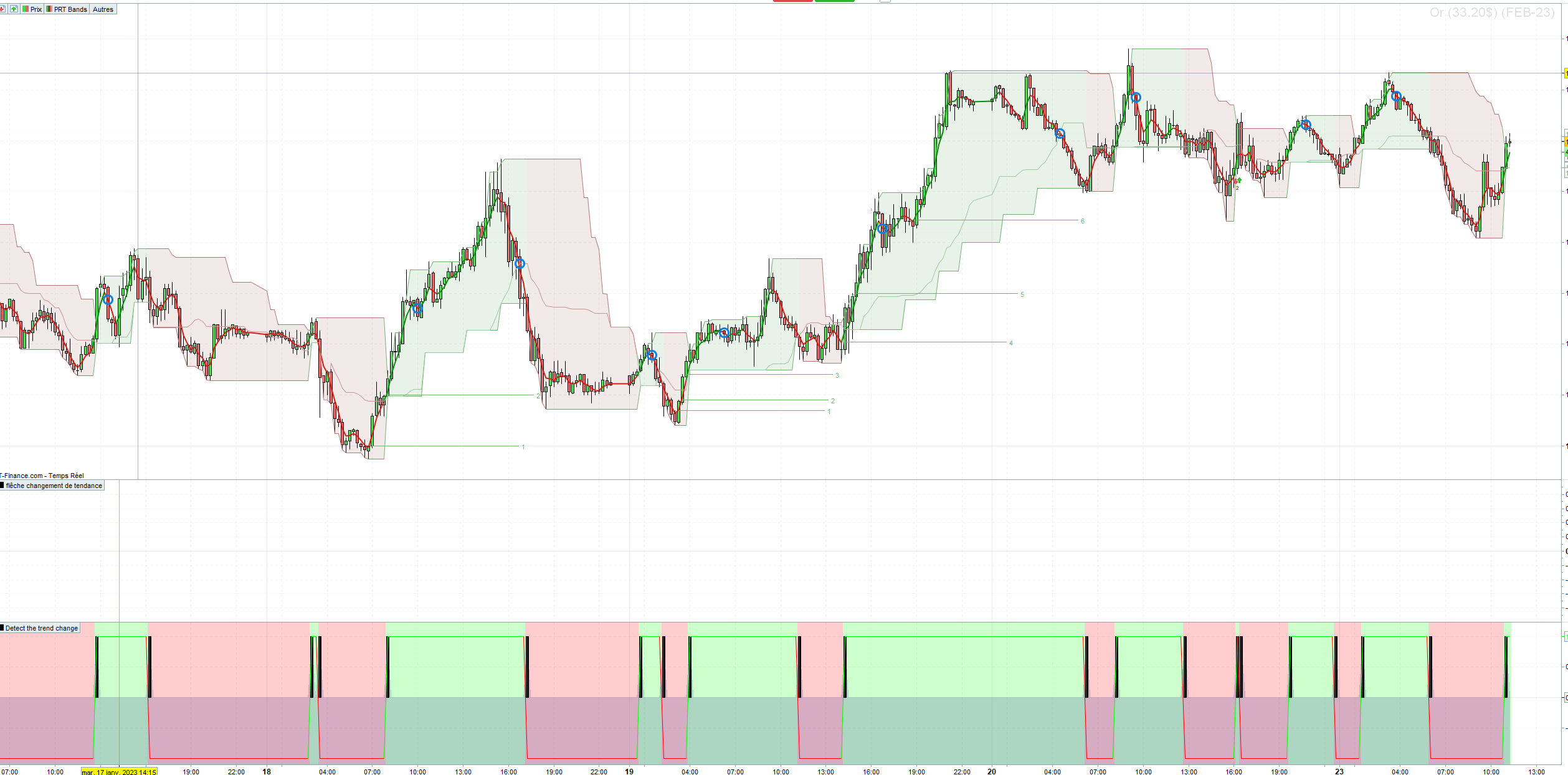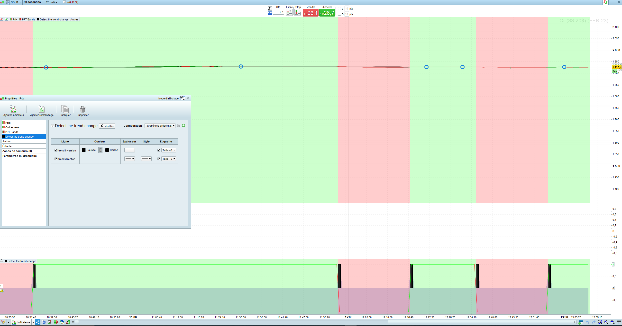 Je commence seulement à m’intéresser au code. J’ai retranscrit les codes pour les flèches et le changement de tendance, mais les indicateurs s’affichent en dessous et non sur le graphique.