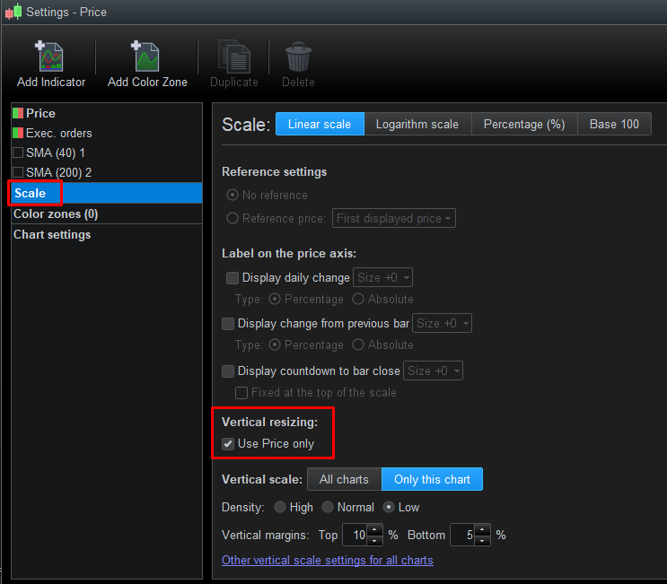 Ajuster l’échelle du prix pour qu’il n’utilise que le prix uniquement (voir image jointe).