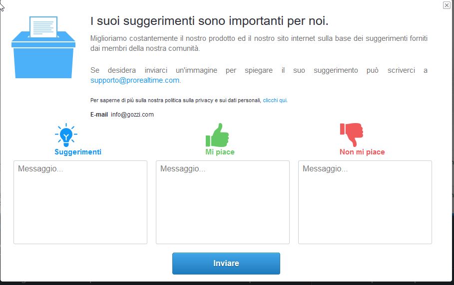 Use this box https://www.prorealtime.com/it/contatto to tell what you don’t like, what you like and what you suggest.