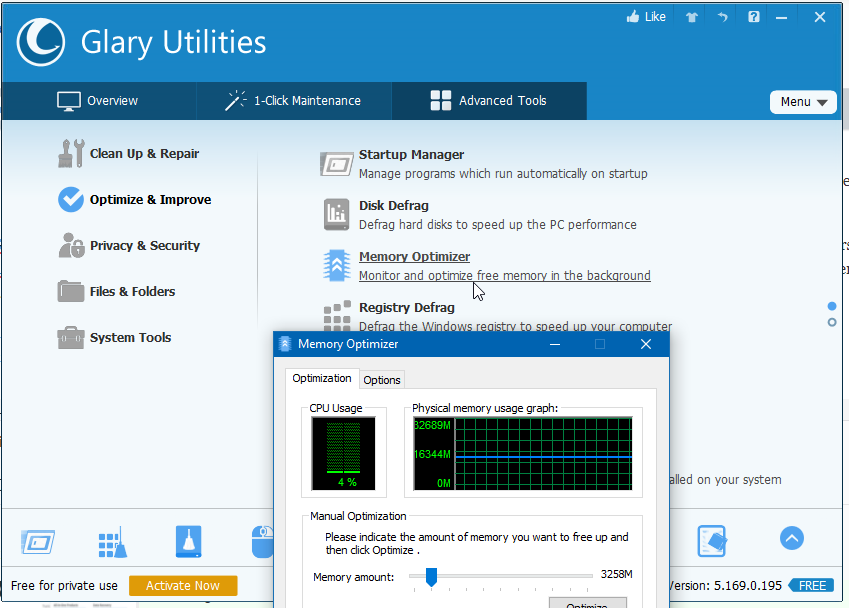 - See second attachment. Choose Optimize & Improve from the left pane. From there click the Memory Optimizer link you see under the mouse arrow.