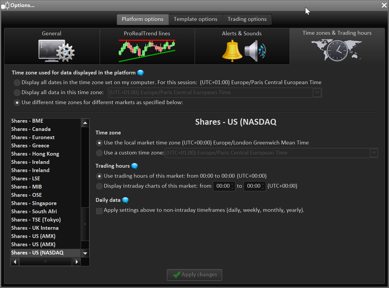 Make sure you haven’t set any custom trading hours for NASDAQ shares and that you are using the default one (see attached pic).