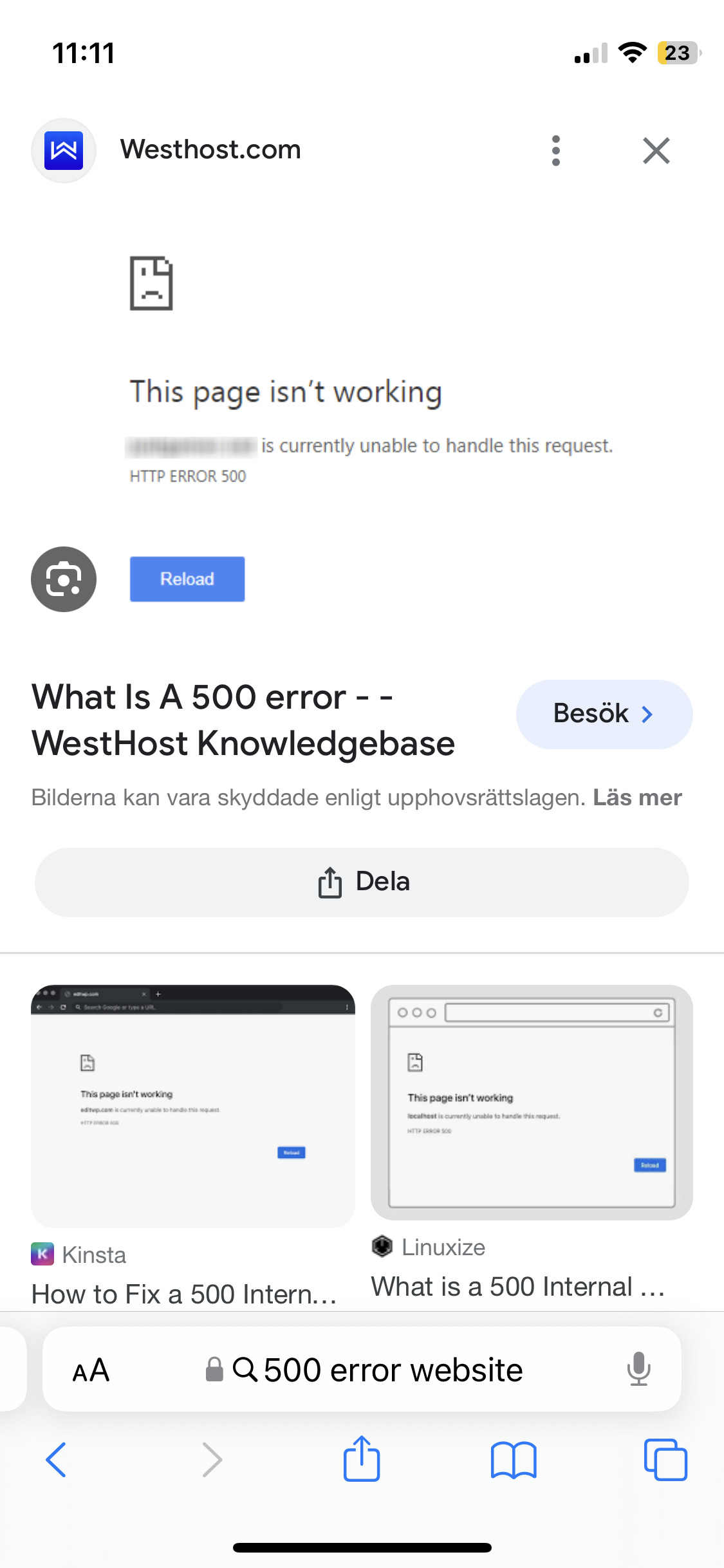 I do not get that screen at all I am getting 500 error