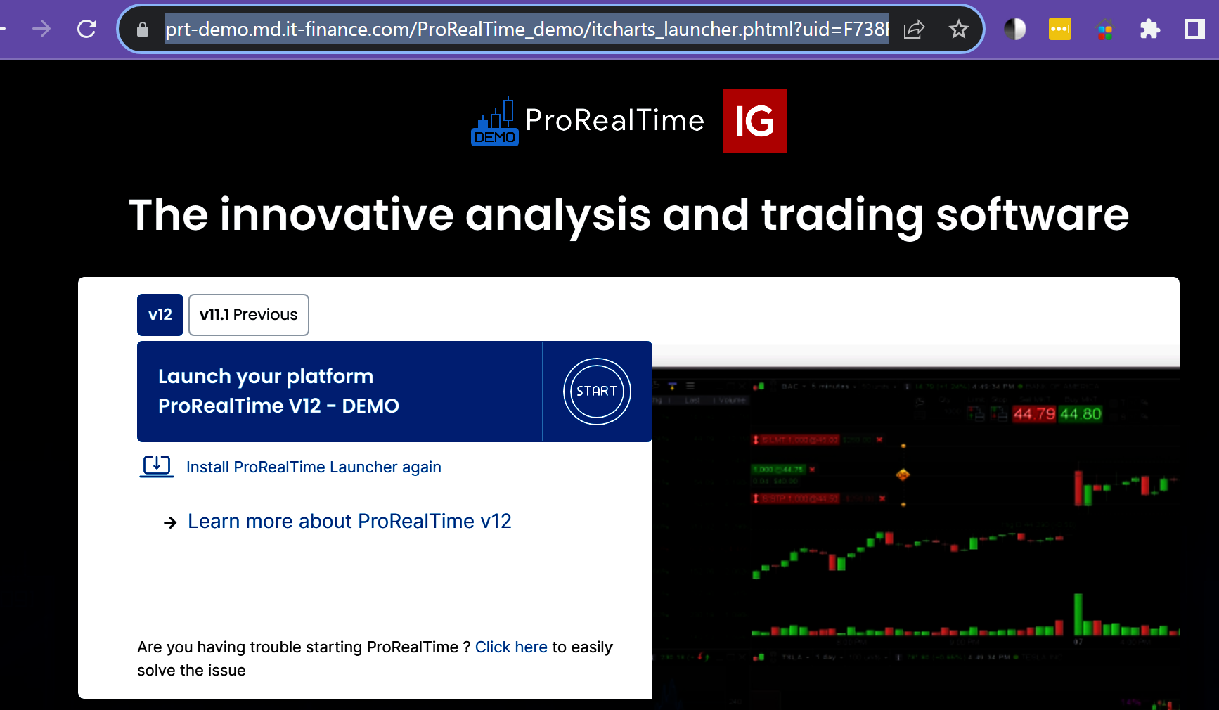 When I press Open ProRealTime from IG:s website when it changes to “https://prt-demo.md.it-finance.com/ProRealTime_demo/itcharts_launcher.phtml?” I get the “HTTP ERROR 500″.
