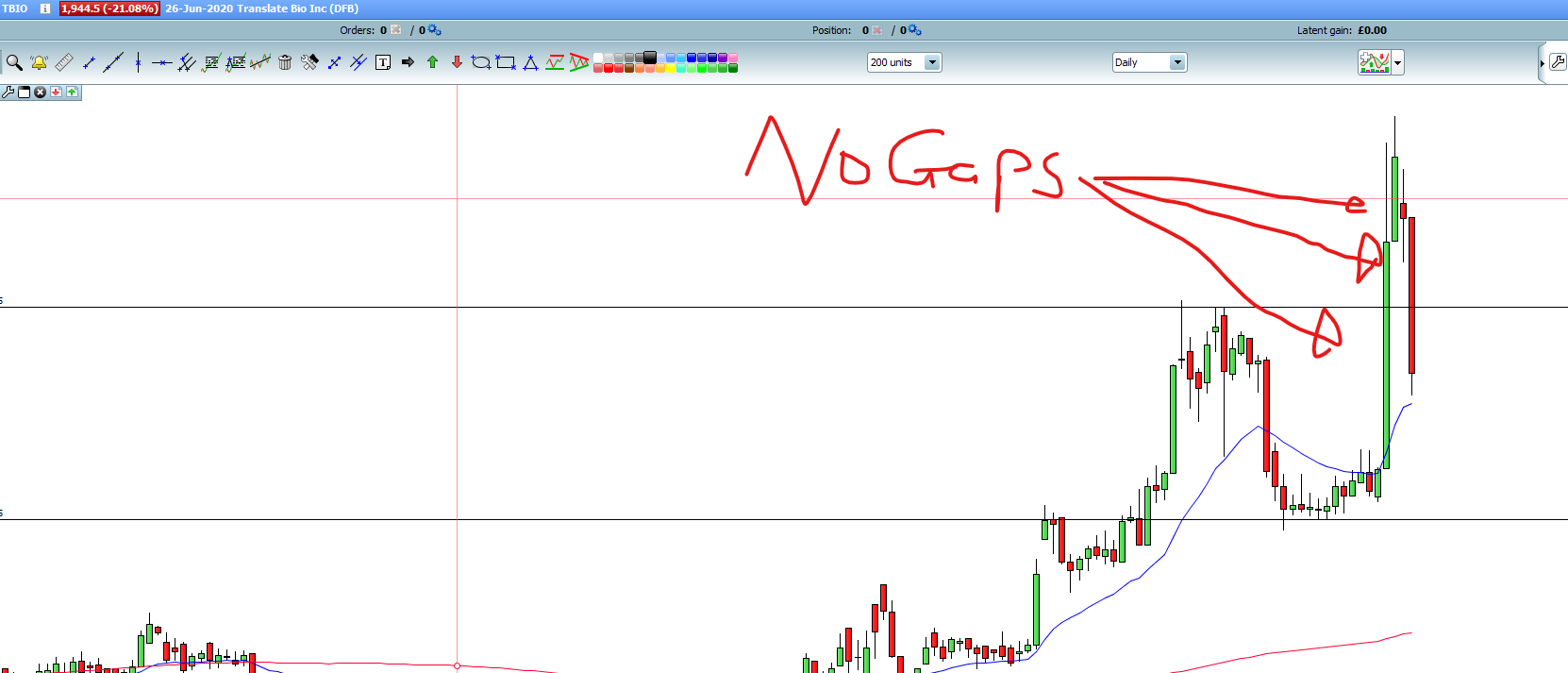 There are plenty of examples, best one to look at is Translate Bio (TBIO). Gapped on open last 4 days but looks like no gaps on PRT.