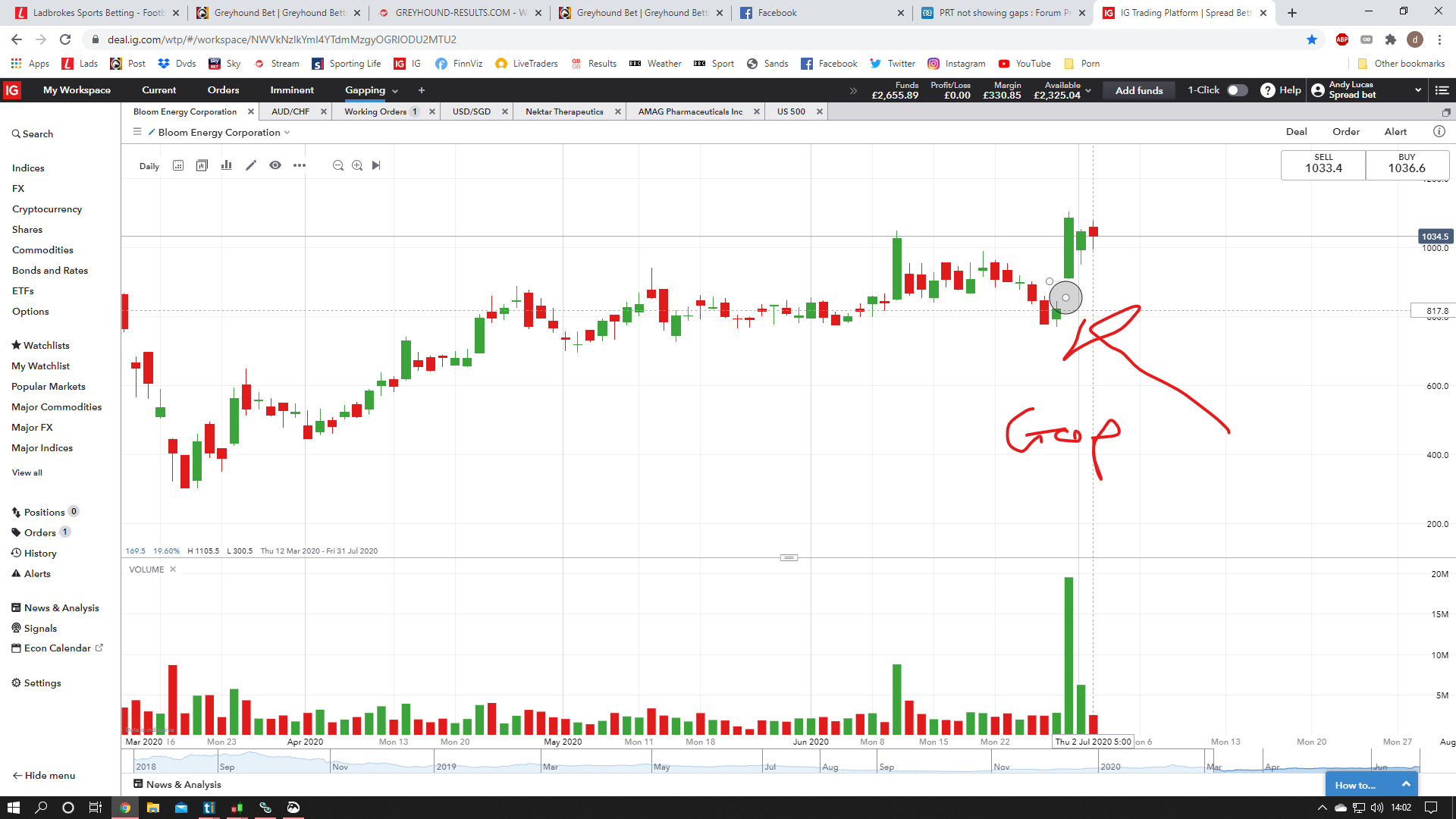 Gaps often occur on IG on Sunday opening at 23:00 (UK time) due to changes in price over the weekend. You can see that there will be a gap at 23:00 on Sunday by looking at the IG Weekend Market … link below to DJI Weekend Market below.