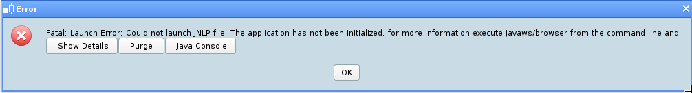 net.sourceforge.jnlp.LaunchException: Fatal: Initialization Error: Could not initialize application. The application has not been initialized, for more information execute javaws from the command line.
